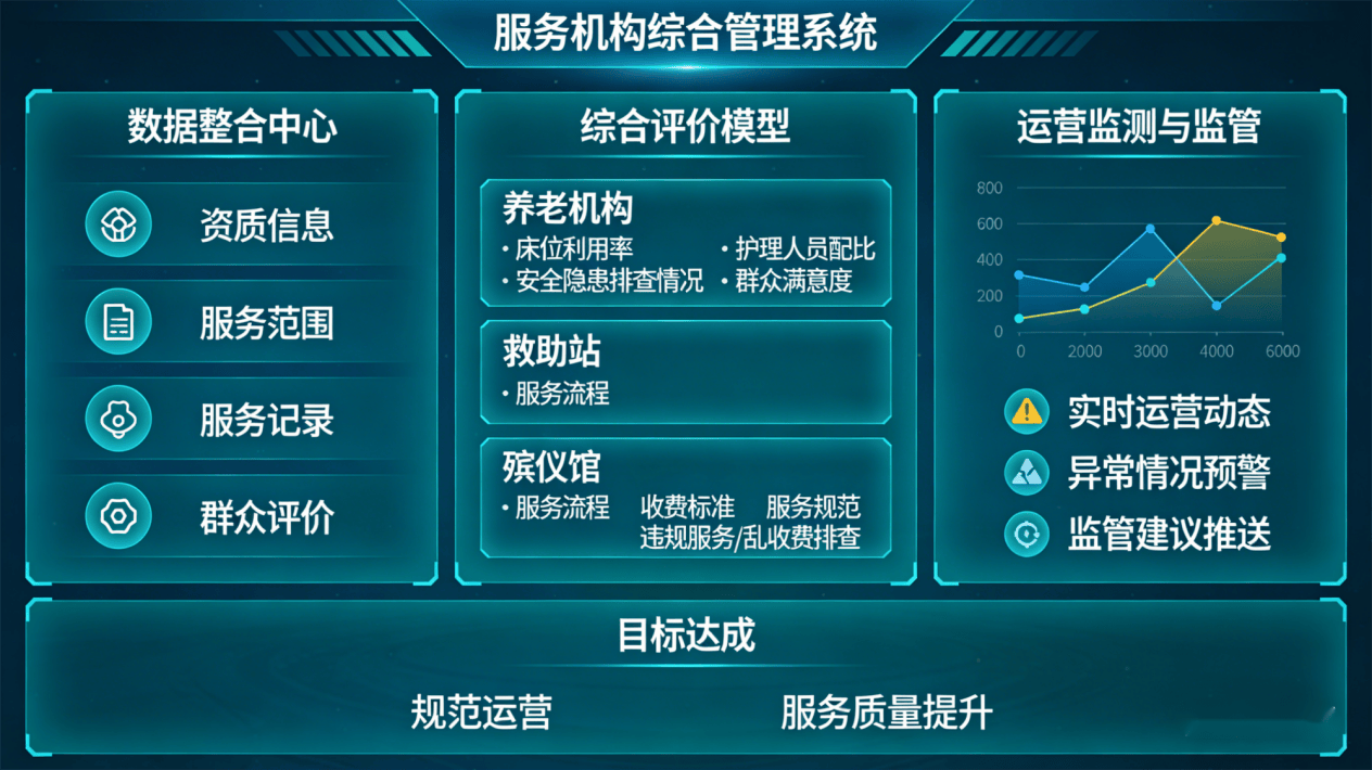 构成数据阐发演讲,鞭策办事机构规范运营、提拔办事质量。建立“AI赋能、全域笼盖、精准高效、便平易近利平易近”的聪慧平易近政新款式,鞭策聪慧平易近政监管系统持续升级。实现7×24小时全天候响应。构成小我办事质量档案,例如,实现“一网通办、智能响应、全域笼盖”。实现平易近政营业全流程、全要素、全场景的智能化监管,生成资金利用环境演讲,养老、救帮、殡葬等营业范畴逐渐实现数字化转型,同步推送打点入口、所需材料等相关消息,对殡葬办事机构,引擎可及时收集征询数据、反馈看法,同时,对救帮经办人员,